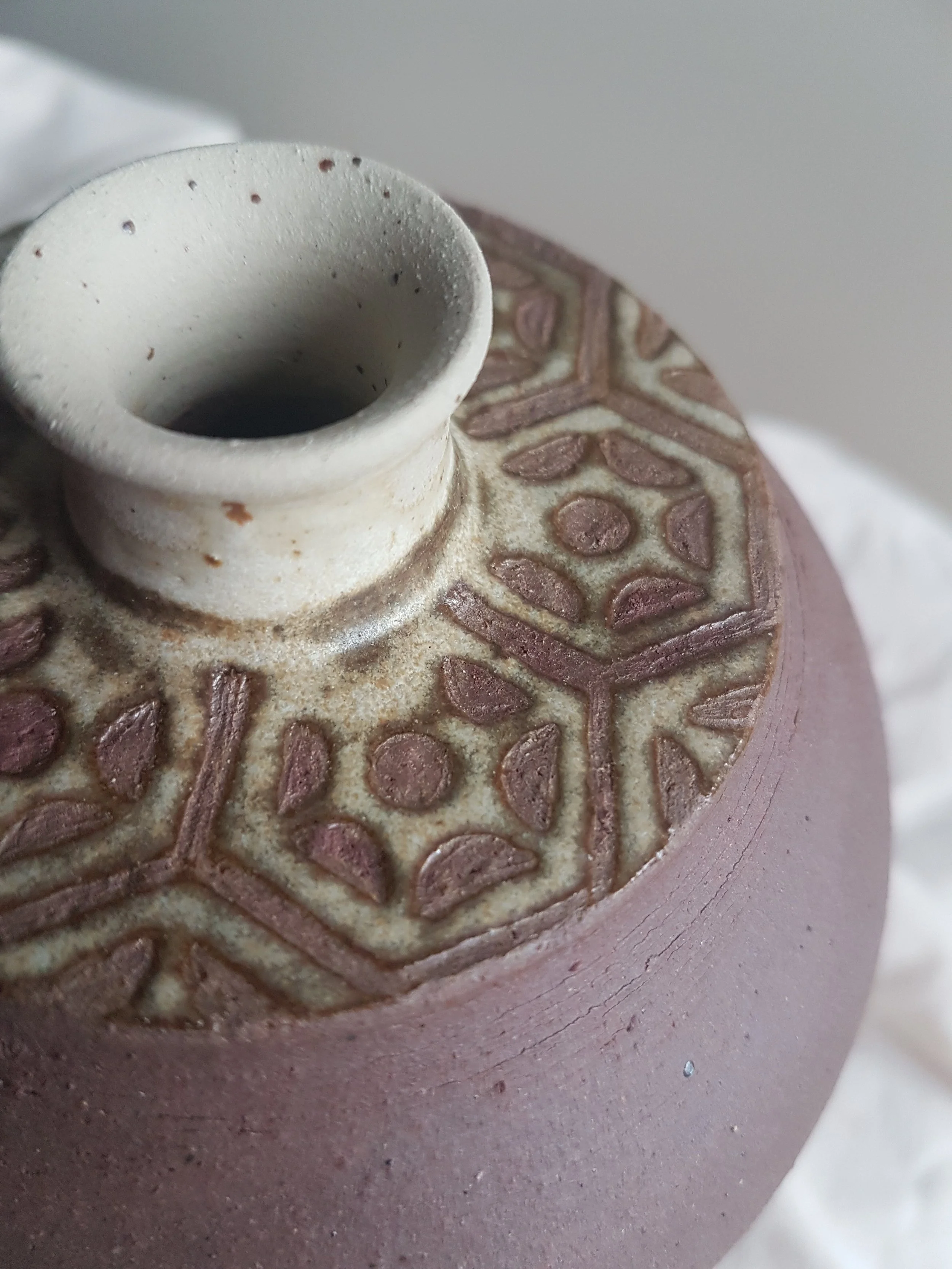 En recherche d’une autre voie professionnelle, je me suis inscrite pour suivre le Cycle Supérieur de Céramique Artistique à l’École d’Arts Plastiques et de Design de Motril, dans la province de Grenade en Andalousie. Ces deux années d’école ont été très importantes pour moi, j’y ai appris diverses techniques et connaissances sur la céramique qui m’ont permis d’ébaucher mon propre style et d’approfondir les techniques qui me plaisaient. J’ai gardé de cette période une influence et inspiration autour des formes et décors de la céramique hispano-musulmane.